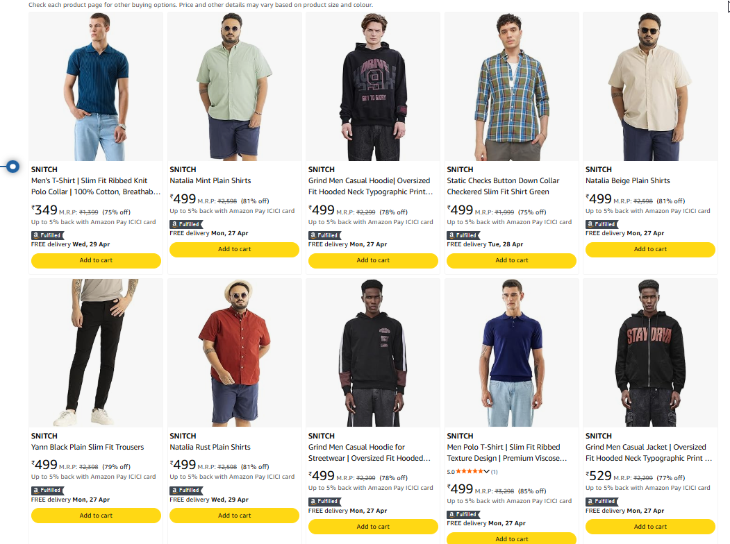Snitch Men's T-Shirt Starting @ 349 is available online in India on Amazon.