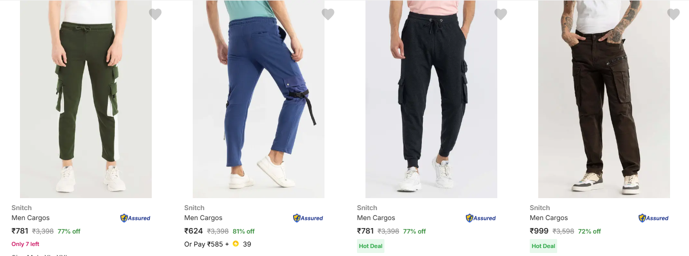 Snitch Men's Cargos upto 81% Discount is available on Flipkart.
