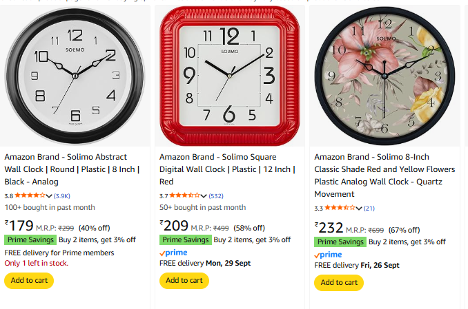 Solimo Wall Clock Starting @ ₹179 On Amazon