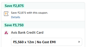 Incl.₹3750 Off Axis Bank CC With EMI +₹2875 Coupon