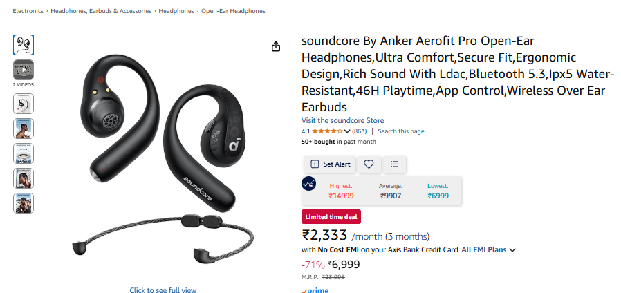 soundcore By Anker Aerofit Pro Open-Ear Headphones,Ultra Comfort,Secure Fit,Ergonomic Design,Rich Sound With Ldac,Bluetooth 5.3,Ipx5 Water-Resistant,46H Playtime,App Control,Wireless Over Ear Earbuds