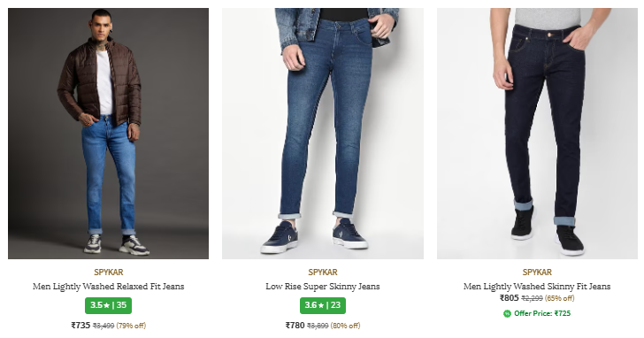 SPYKAR Men's Jeans @ Minimum 70% Discount, Available on Ajio.