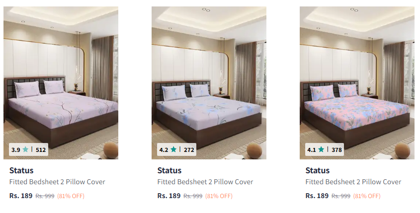 Status Bedsheets Starting @ ₹189 on Myntra.