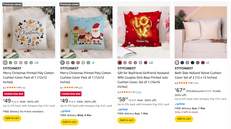 STITCHNEST Cushion Cover starting @ ₹49