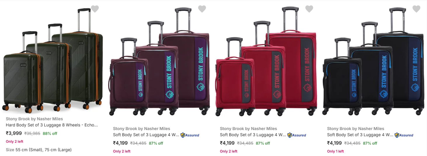 Stony Brook By Nasher Miles Suitcases (PO3) upto 88% Discount is available on Flipkart.