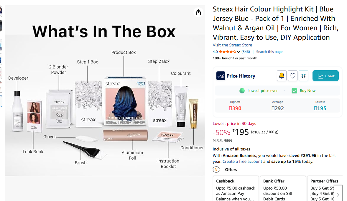 Streax Hair Colour Highlight Kit | Blue Jersey Blue - Pack of 1 | Enriched With Walnut & Argan Oil | For Women | Rich, Vibrant, Easy to Use, DIY Application