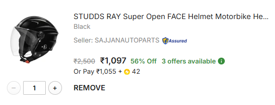 STUDDS RAY Super Open FACE Helmet Motorbike Helmet (Black).