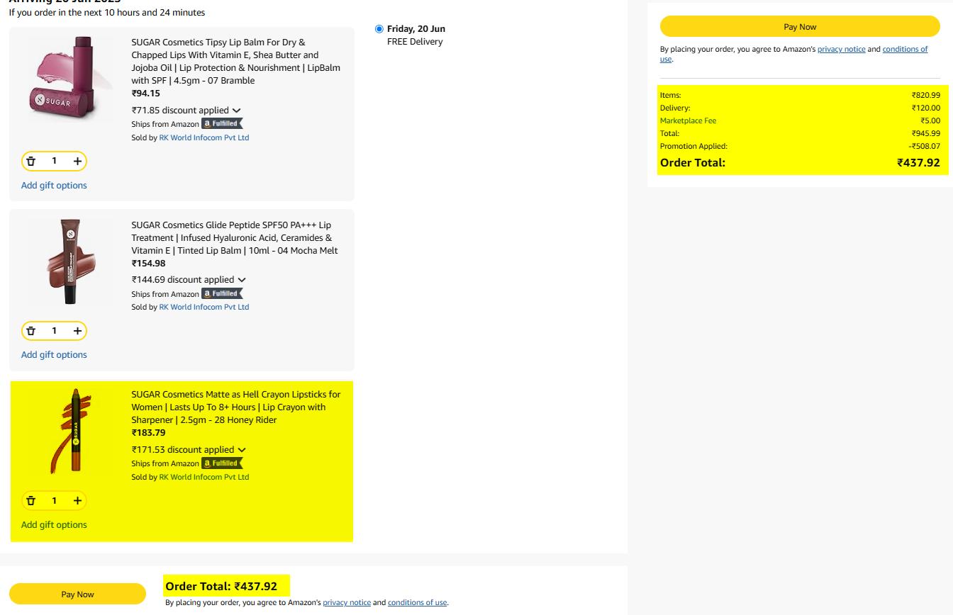 SUGAR Cosmetics : Get a Free Lipstick worth ₹355 on orders above ₹399