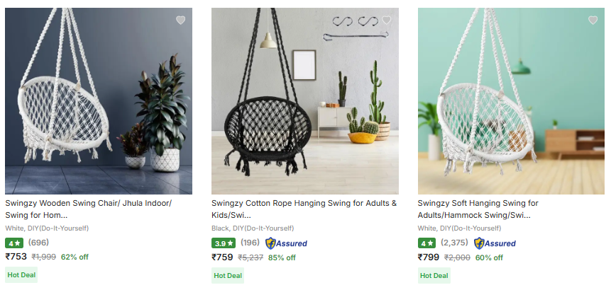 Swingzy Hammock Swings @ Starting ₹753, Available on Flipkart.
