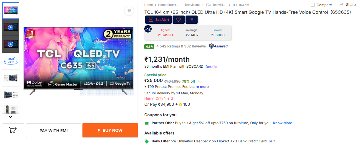Incl.₹1940 off on Flipkart Axis CC