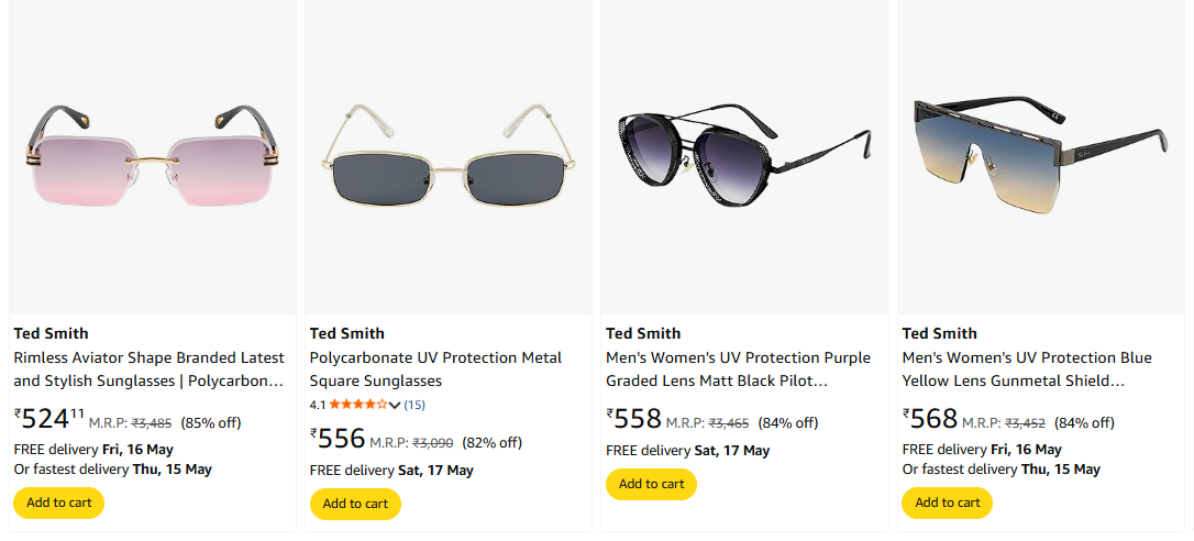 Ted Smith Sunglasses Minimum 80% Discount on Amazon