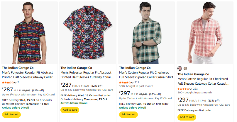 The Indian Garage Co Men's Shirts at minimum 82% Discount available online in India on Amazon. You are getting a ₹1599 Discount on this product from it's MRP MRP: 1599. This deal was updated by @nirali on 12th October, 2025 at 11:15 AM.