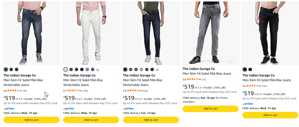 The indian garage co mens jeans at 74% discount is available online in India (74% off) on Amazon.