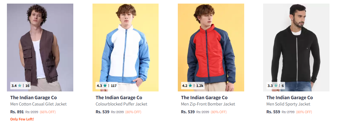 The Indian Garage Co. Men's Jackets at minimum 80% Discount available online in India (80% discount from MRP) on Myntra. Discount: 80%. This deal was updated by @radhika on 30th October, 2025 at 3:40 PM.