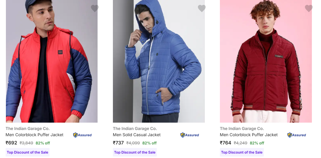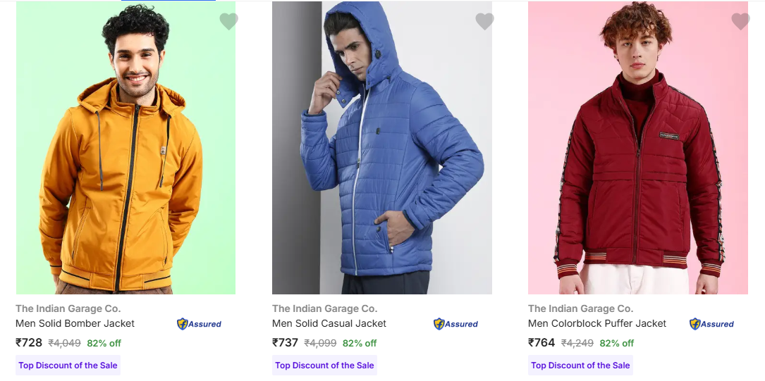 The Indian Garage Co Men's Jackets upto 82% Discount is available on Flipkart.