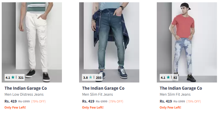 The Indian Garage Co Men's Jeans @ Flat 79% Discount, Available on Myntra.