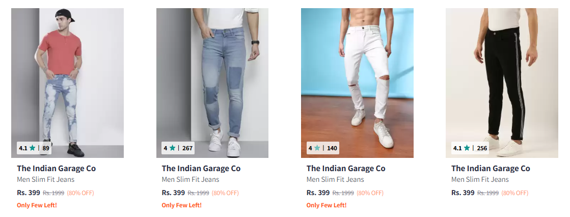 The Indian Garage Co Men's Jeans at minimum 80% Discount is available on Myntra.