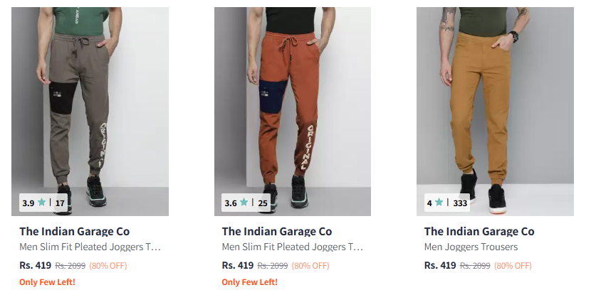 The Indian Garage Co. Men's Trousers at minimum 80% Discount is available on Myntra.