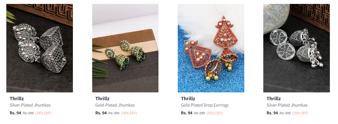 Thrillz Earrings starting at ₹94 is available on Myntra.