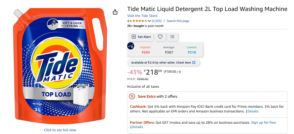 Tide Matic Liquid Detergent 2L Top Load Washing Machine