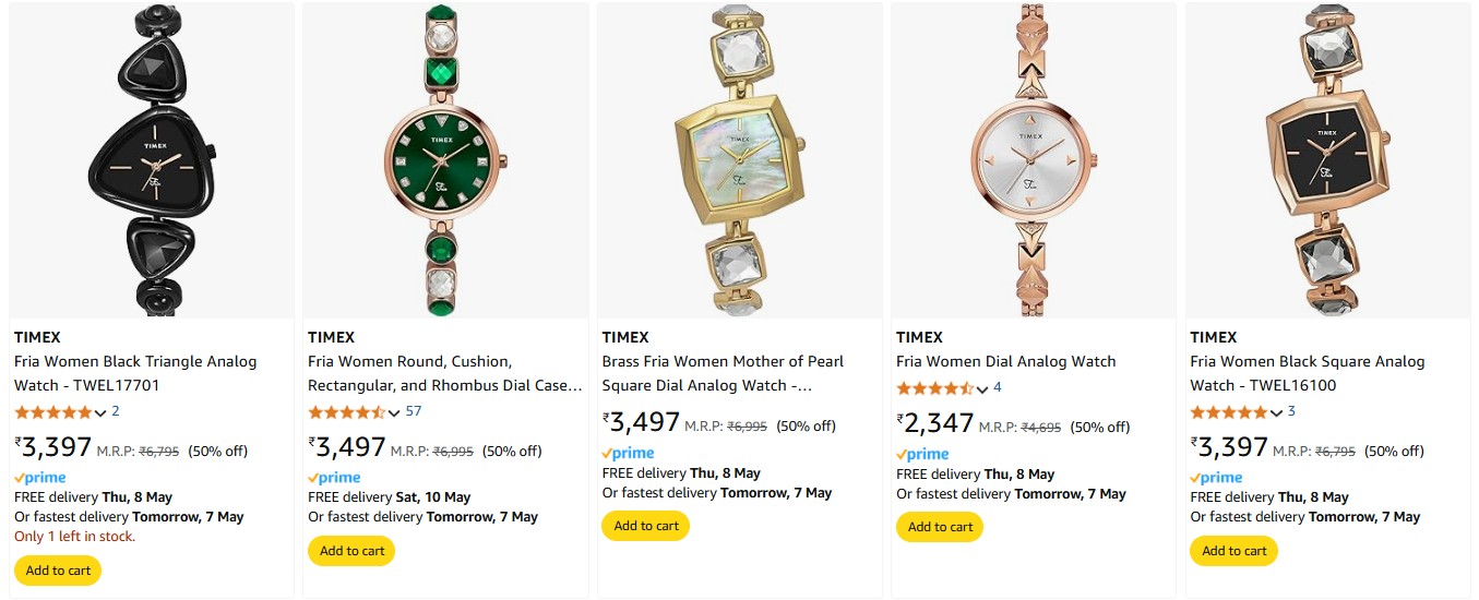 TIMEX Fria Women Analog Watch Minimum 50% Discount on Amazon