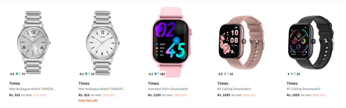 Timex Watches upto 77% Discount | Starting at ₹918 is available on Myntra.