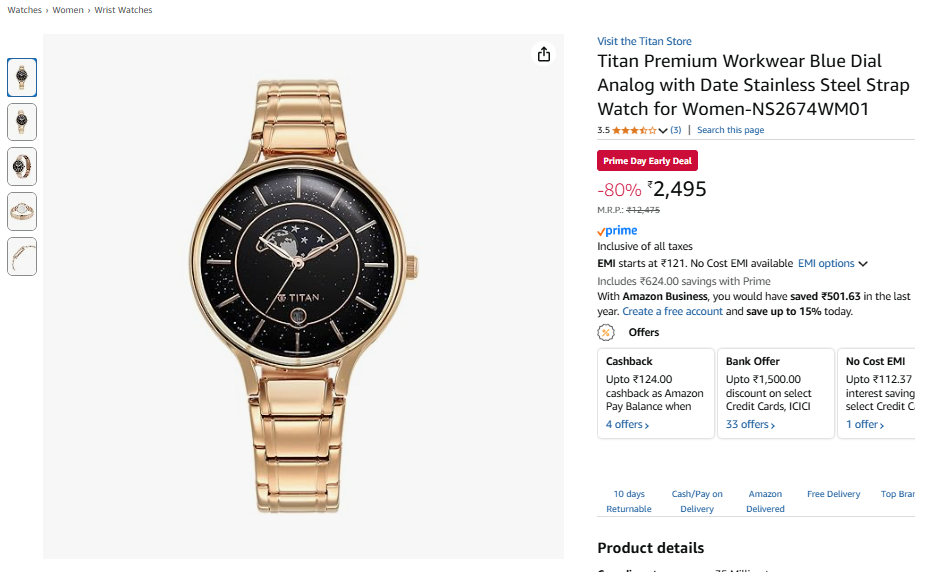Titan Premium Workwear Blue Dial Analog with Date Stainless Steel Strap Watch for Women-NS2674WM01.