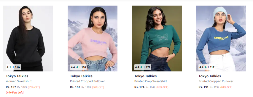 Tokyo Talkies Women's Sweatshirt Starting at ₹157