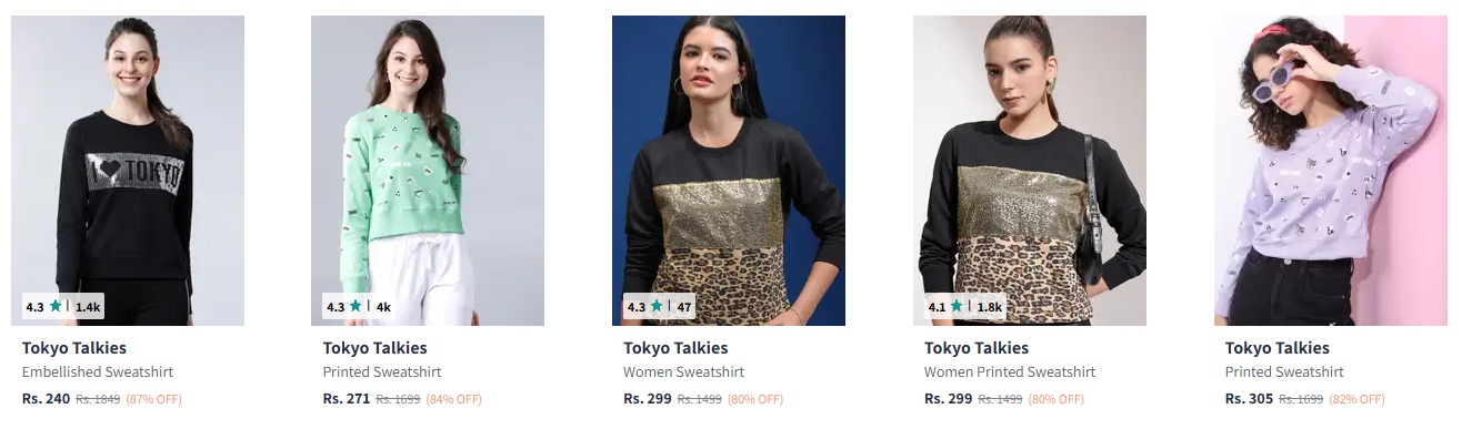 Tokyo Talkies Women Sweatshirt Starting at ₹240 available on Myntra