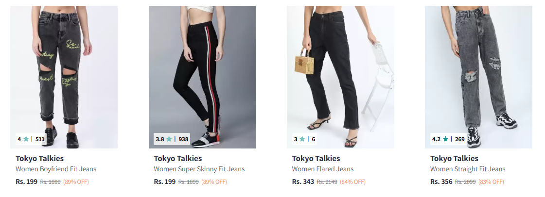 Tokyo Talkies Women's Jeans upto 89% Discount is available on Myntra.