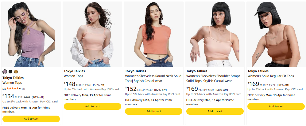 Tokyo talkies womens top upto 58% discount available online in India (58% discount from MRP) on Amazon. Discount: 58%. This deal was updated by @kumkum on 03rd April, 2026 at 11:30 AM.