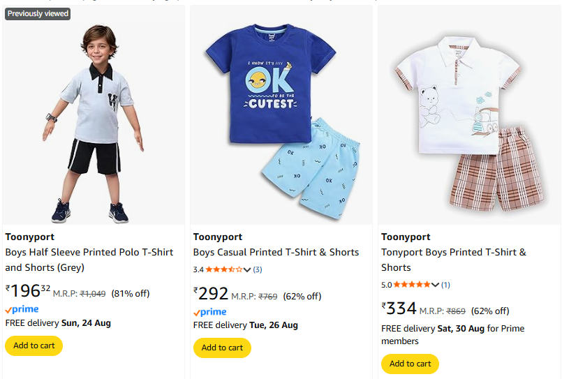 Toonyport Boys Dresses Starting @ ₹196 on Amazon.