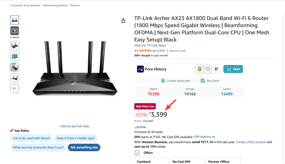 TP-Link Archer AX23 AX1800 Dual-Band Wi-Fi 6 Router (1800 Mbps Speed Gigabit Wireless | Beamforming OFDMA | Next-Gen Platform Dual-Core CPU | One Mesh Easy Setup) Black
