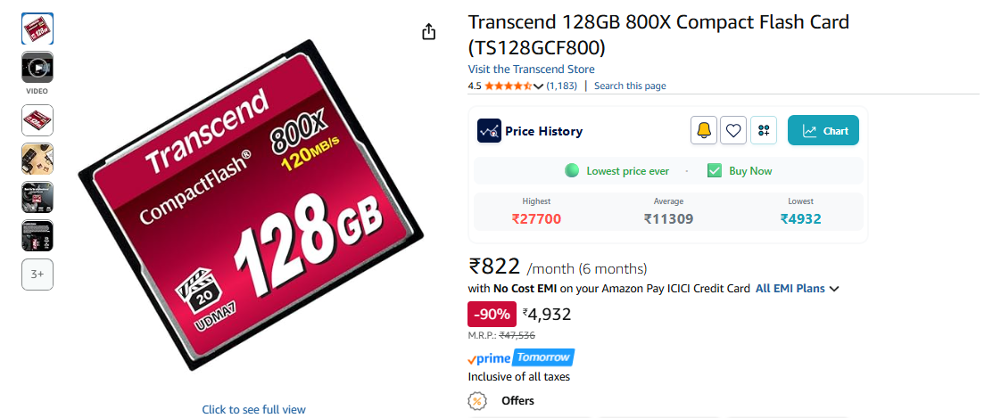 Transcend 128GB 800X Compact Flash Card (TS128GCF800).