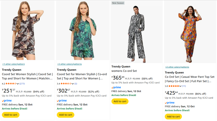 Trendy Queen Women's Co-ord Set upto 94% Discount is available on Amazon.