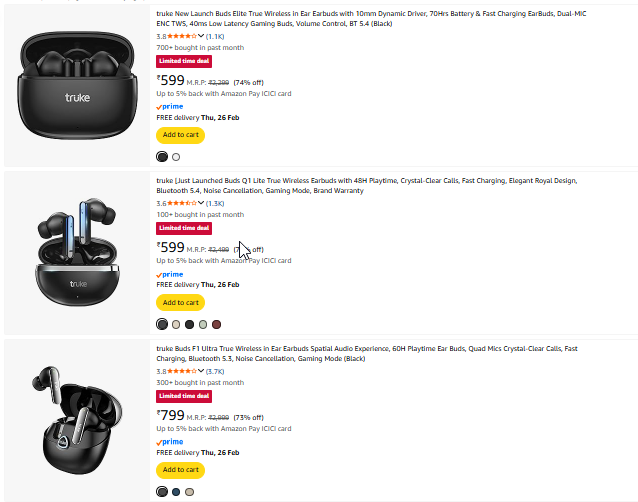 truke New Launch Buds Aura True Wireless in Ear Earbuds with 70Hrs of Playtime and Fast Charging Ear Buds, 13mm Titanium Drivers, Quad-MIC ENC TWS, 40ms Low Latency Gaming Buds, BT 5.4 (CarbonBlack)