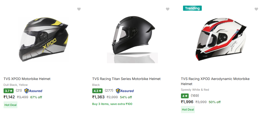 Tvs Biker Helmets at minimum 50% Discount is available on Flipkart.