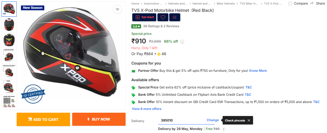 TVS XPOD Aerodynamic Helmet for Men-ISI DOT Certified .