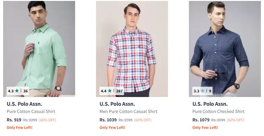 U.S. POLO ASSN. Men Shirt Minimum 60% Discount