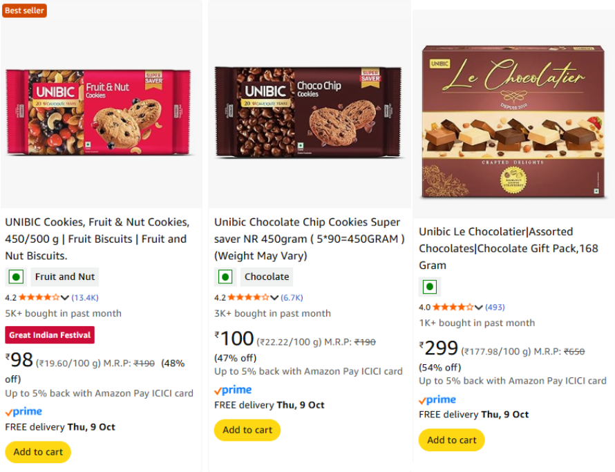 Unibic Cookies & Snacks upto 54% Discount | Starting at ₹98 is available on Amazon.