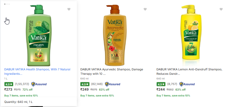 UP TO 75% OFF on Dabur Vatika Shampoo