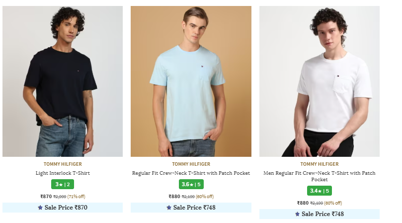 Upto 71% Off on TOMMY HILFIGER Men's T-shirts