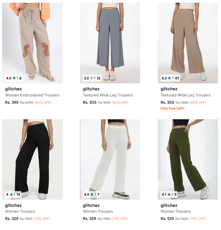Upto 84% OFF | Glitchez Women's Trousers, Available on Myntra.