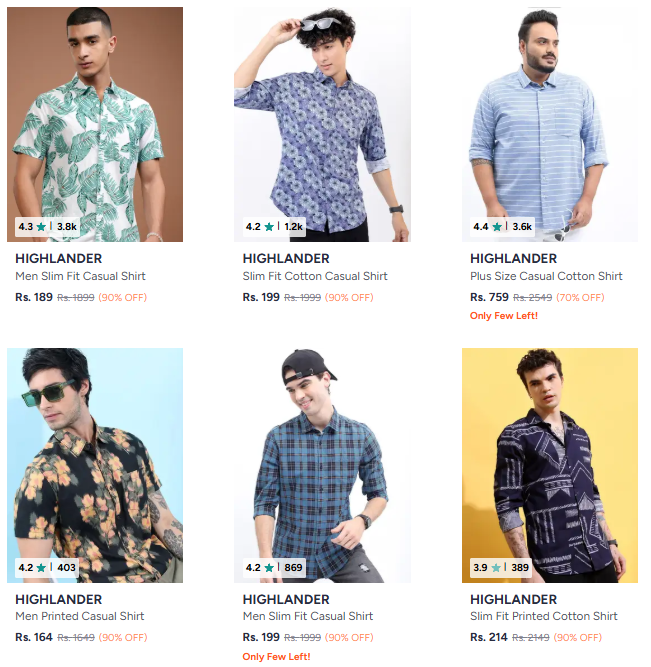 UP TO 90% OFF - Highlander Casual Shirts for Men's, Available on Myntra.