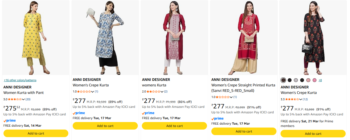 Upto 91% off on ANNI DESIGNER Women's Kurta set