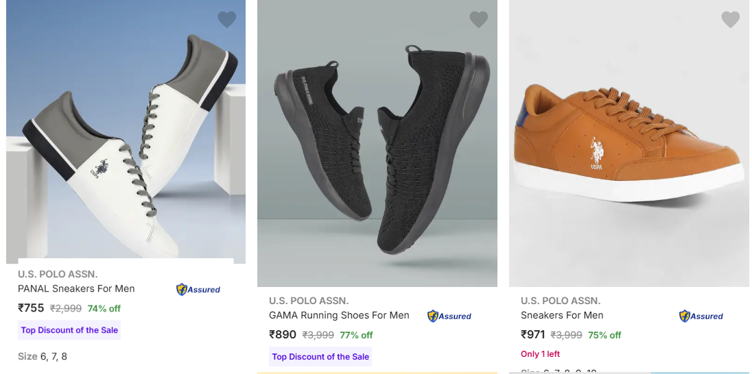 U S Polo Assn Men's Shoes upto 77% Discount | Starting at ₹755 is available on Flipkart.