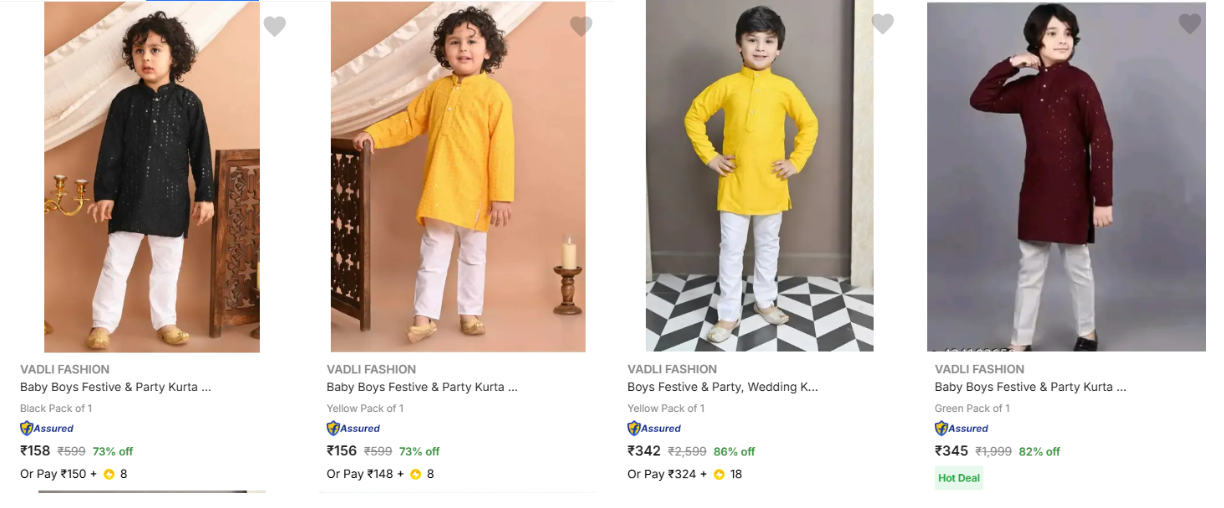 Vadli Fashion Kids' Ethnic Sets upto 86% Discount | Starting at ₹158 is available on Flipkart.