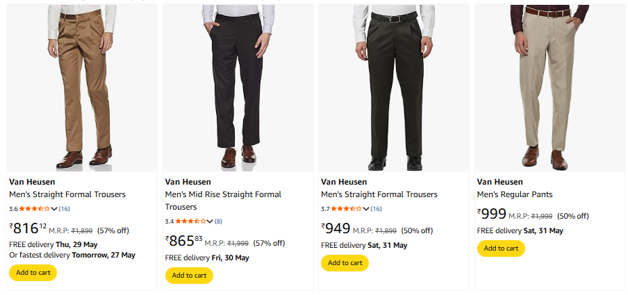 VAN HEUSEN Men Formal TrousersMinimum 50% Discount on Amazon