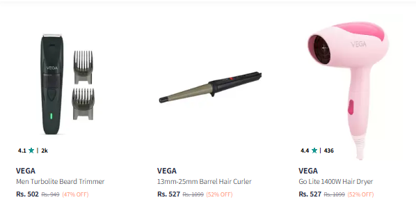 VEGA Beauty & Grooming Appliances Upto 52% Discount on Myntra.