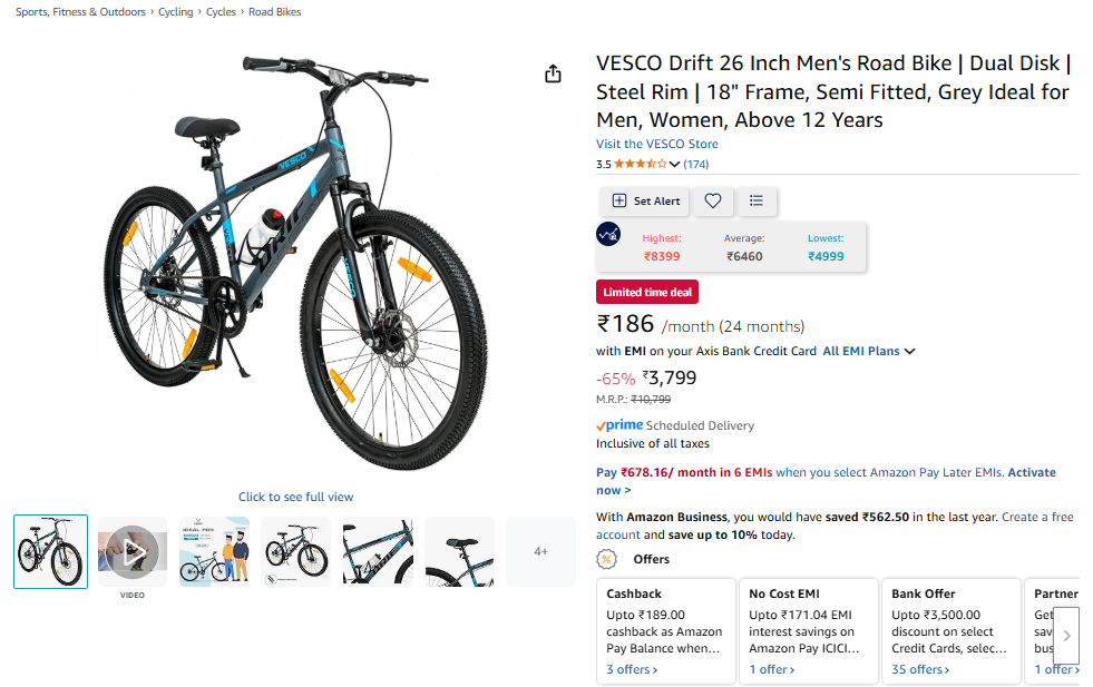 VESCO Drift 26 Inch Men's Road Bike | Dual Disk | Steel Rim | 18\' Frame, Semi Fitted, Grey Ideal for Men, Women, Above 12 Years.